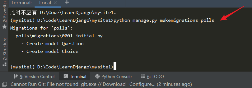 python manage.py makemigrations polls
