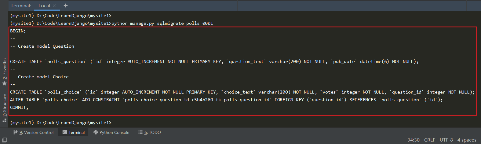 python manage.py sqlmigrate polls 0001
