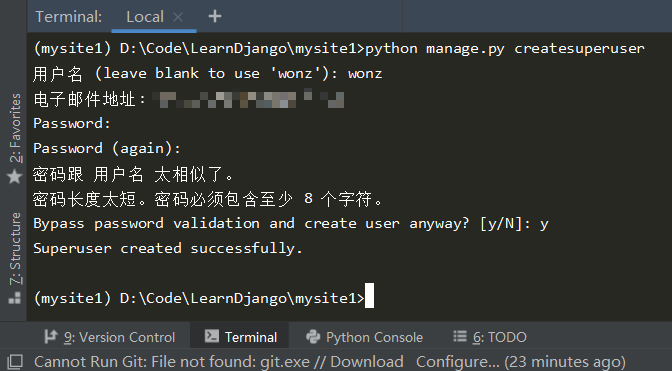 python manage.py createsuperuser