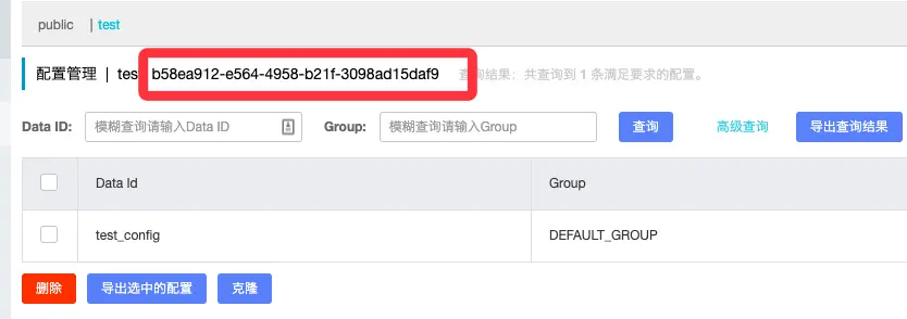 curl "http://172.16.0.13:8848/nacos/v1/cs/configs?dataId=test_config&group=DEFAULT_GROUP&tenant=b58ea912-e564-4958-b21f-3098ad15daf9"