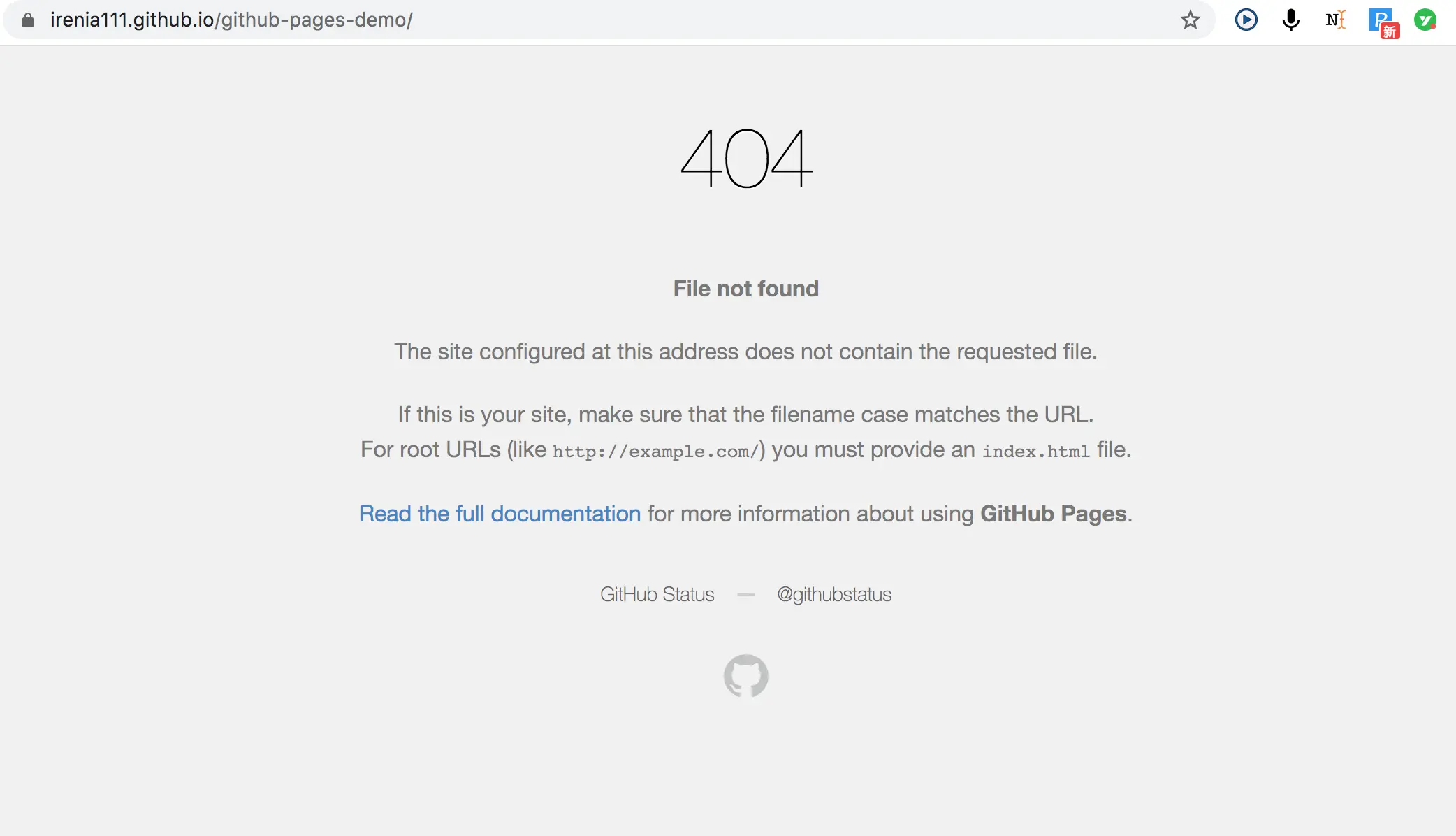因为我们没有输入文件地址,链接只是项目github-pages-demo的预览链接,所以我们肯定是看不到页面的。