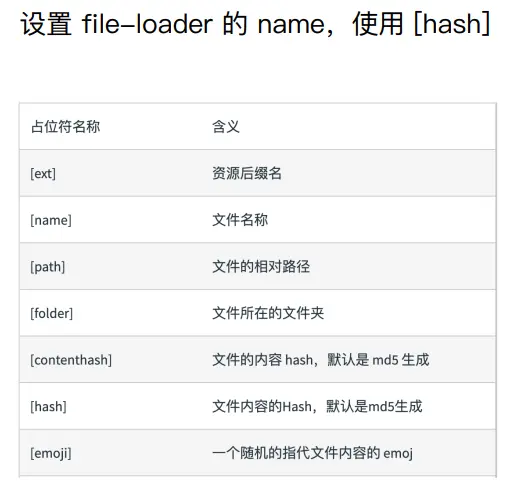 图片/文字: 一般使用hash,这里的hash就是contenthash,直接在loader那里配置
