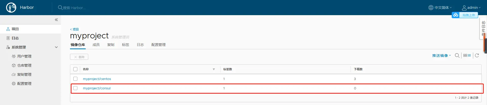 [root@t71 harbor]# docker push 192.168.4.71:80/myproject/consul:latest