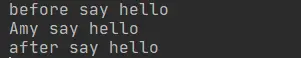 最后我们写一个测试类,创建一个代理对象,执行sayHello()方法,看看输出的结果