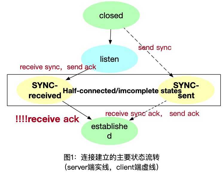 注意理解本文的内容需要建立在了解TCP连接的过程的基础上,希望读者读到这里快速会议一下TCP连接建立的过程,进行知识预热。