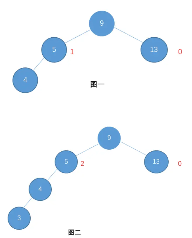 如图1所示,1表示的是5这个节点下面有1个节点,也就是树的高度为1,0表示下面没有节点了,因此图1就是ALV树。