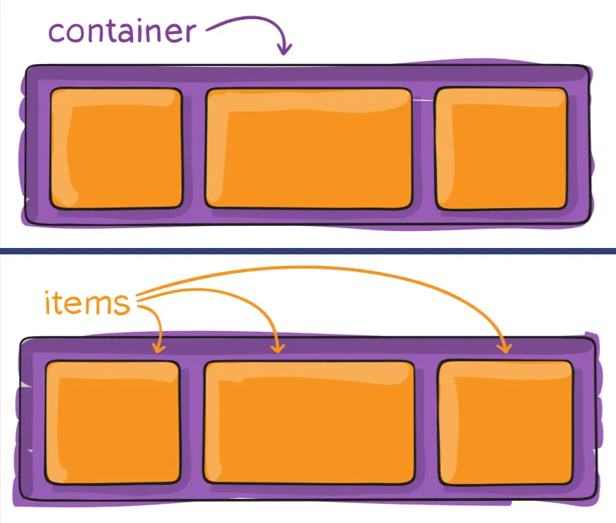 container是容器,相当于父元素。他里面的直接的子元素叫做item。