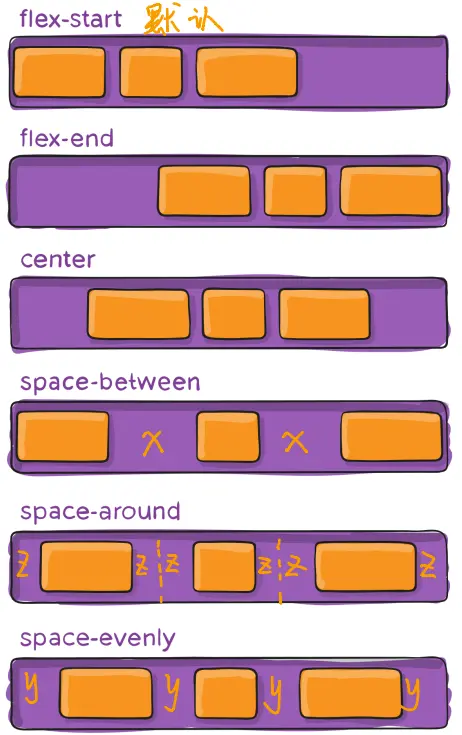 也就是当一行中没有被items塞满,宽度有多余,那么多余的空间该怎么排列?