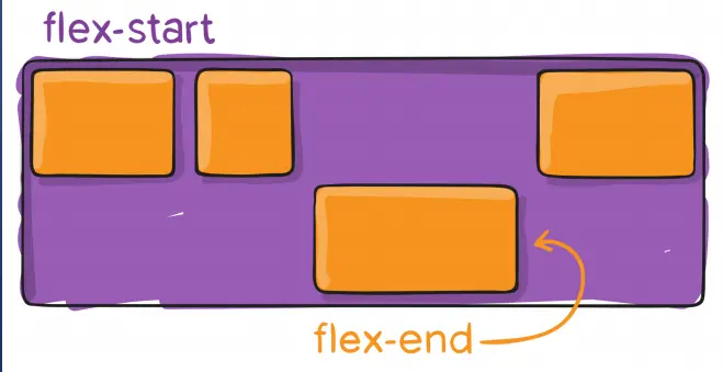 - flex-end: 元素与容器的底部对齐。