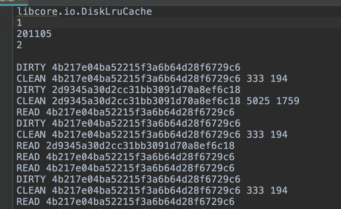 主要是获取编辑器,编辑器获取的同时,DiskLruCache内存缓存中会存储对应的key和Entry,entry会指定对应的Editor,且会写入一条数据到日志中,目前日志key对应的数据是DIRTY