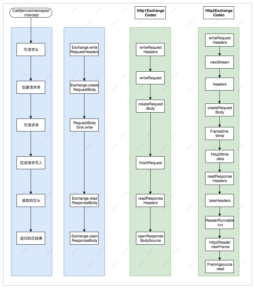 整体可以划分6个步骤,根据不同协议执行实现逻辑区分Http1.x和Http2