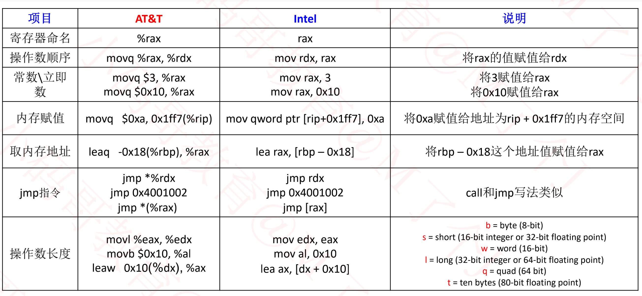 - x64 AT&T 和 Intel 汇编书写格式区别