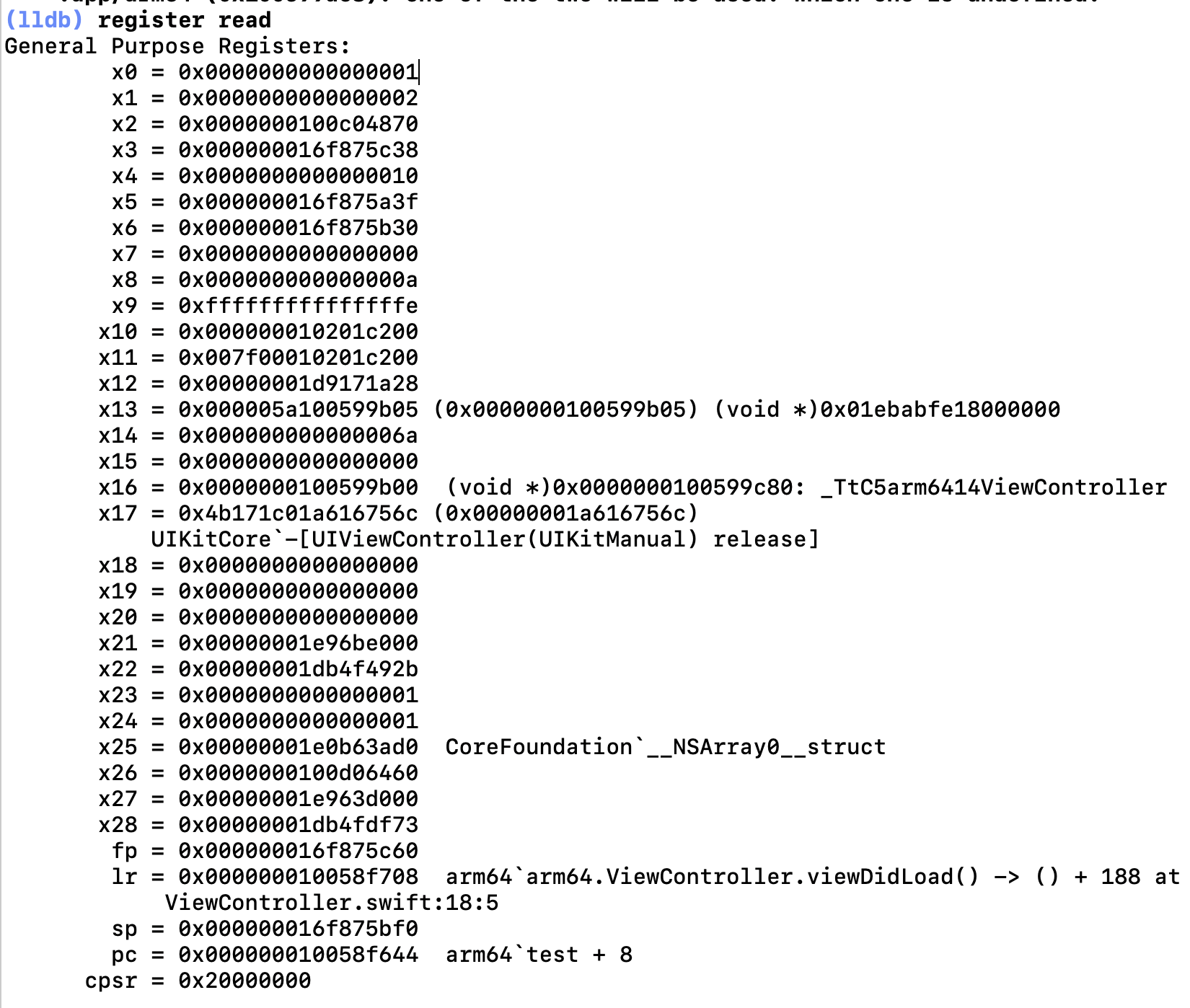 lr(Link Register),也就是x30 存储着函数的返回地址 -
