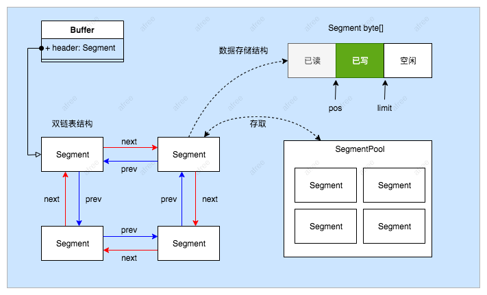 // Buffer的缓存数据是由 Segment双向链表数据结构缓存