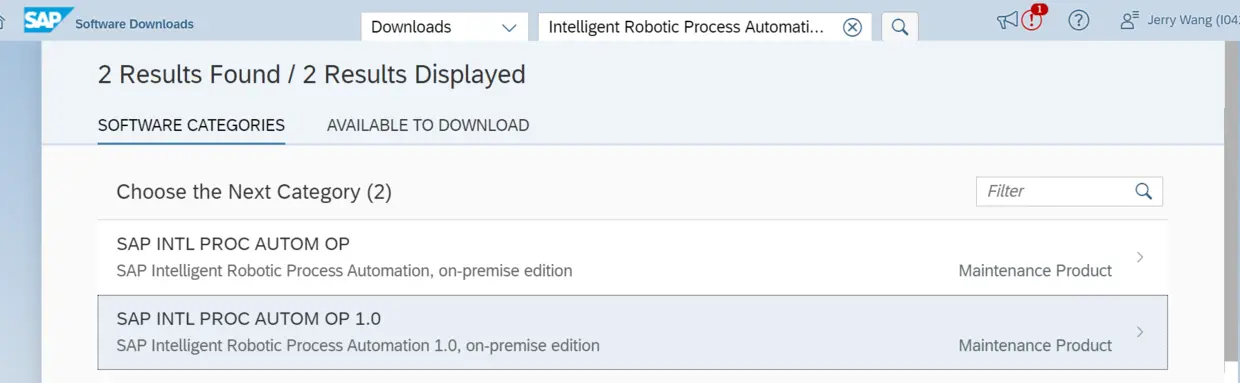到SAP官网下载这个场景需要的两个工具: SAP Intelligent Robotic Process Automation Desktop Studio和SAP Intelligent Robotic Process Automation Desktop Agent. launchpad.support.sap.com/#/softwarec…