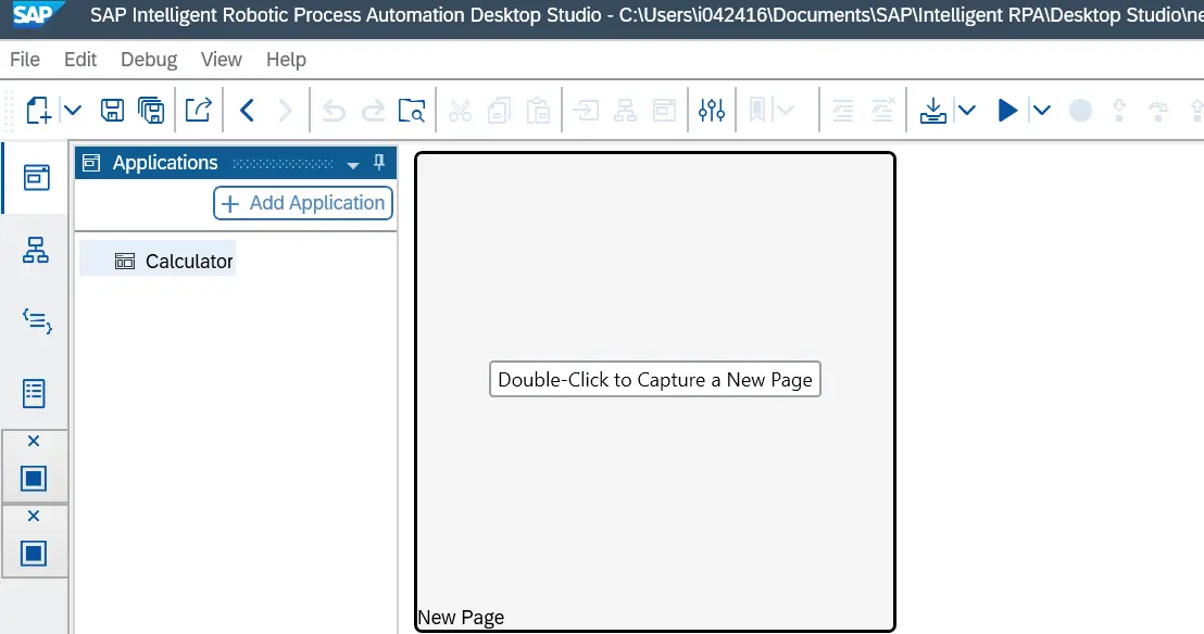到目前为止,SAP iRPA里的计算器是一个空的页面,点击Capture a New Page: