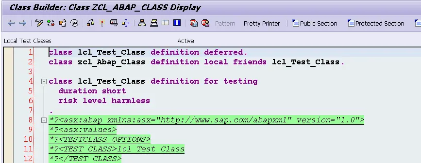 SE38打开include程序之后,自动进入下面这个界面,发现CCAU程序存储的是这个类的单元测试代码。