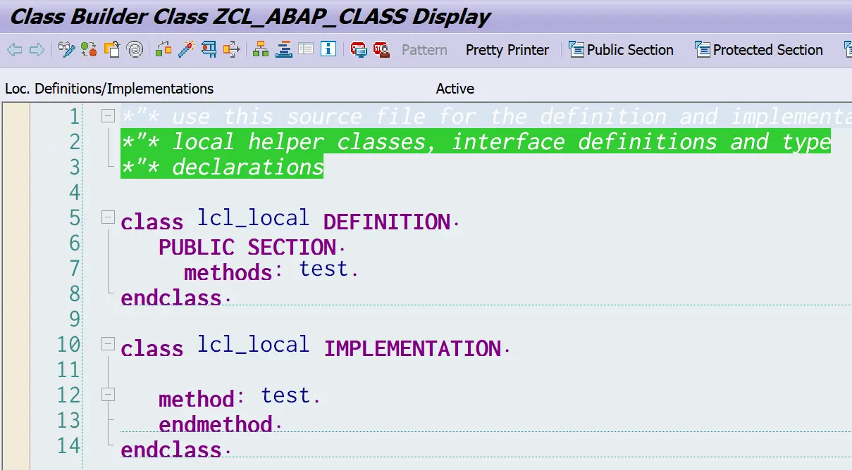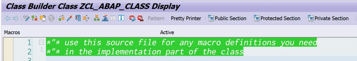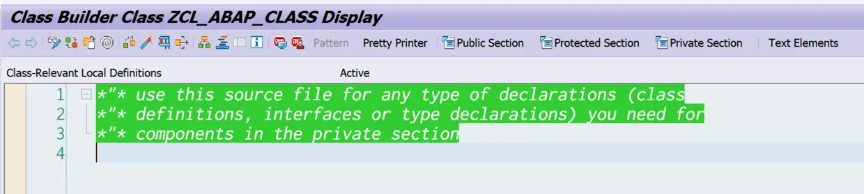 此处维护的是ABAP类的局部定义,包括类的局部类,局部接口,局部类型定义等等。