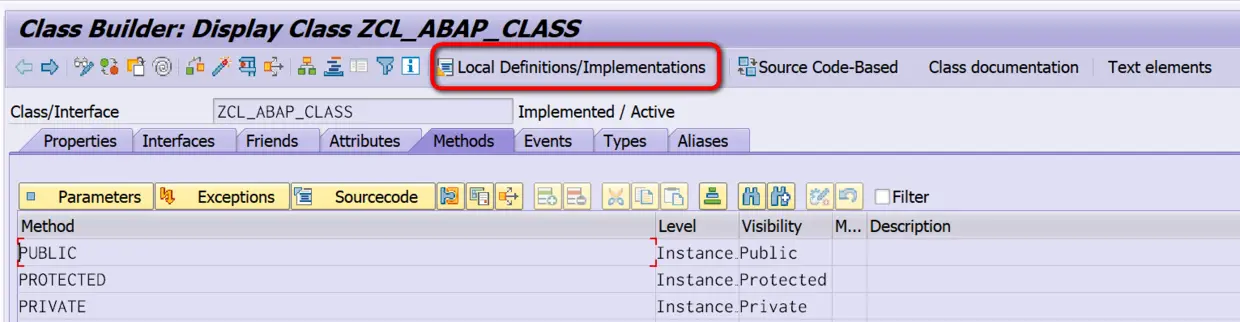 也可以先进入SE24,然后点击Local Definitions/Implementations打开。