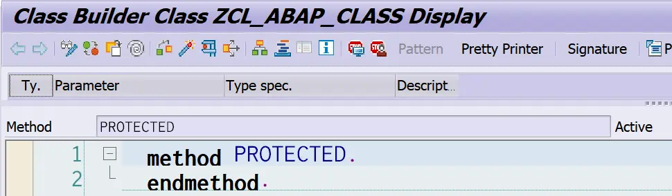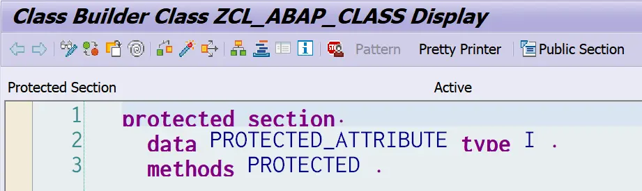创建一个最简单的ABAP类,包含public,protected和private方法和属性各一个,麻雀虽小,五脏俱全。