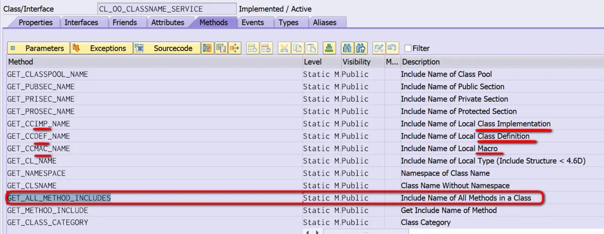 如何用代码的方式获得一个类的这些不同的ABAP include程序名称呢?