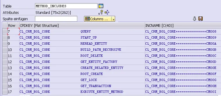 比如我想知道CL_CRM_BOL_CORE这个类所有方法对应的include名称,那么在工具类的GET_ALL_METHOD_INCLUDES打个断点,