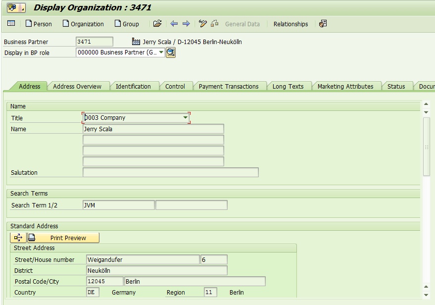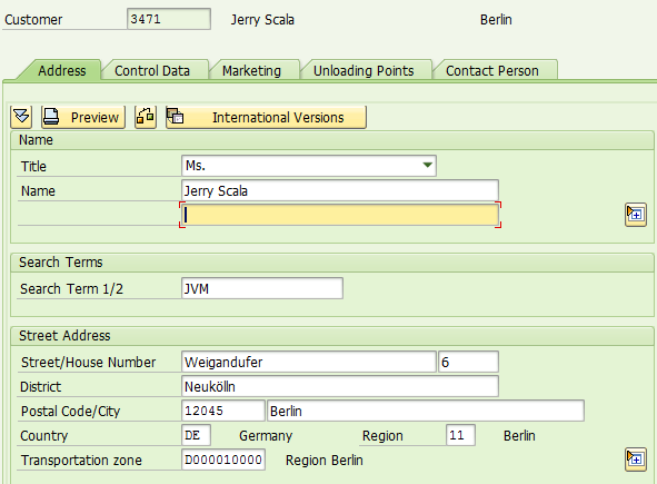 The customer being download is created in tcode VD01 in ERP as below: