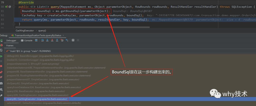 而这就是前一部分的答案呀。sql就是通过org.apache.ibatis.executor.CachingExecutor的81行代码产生的: