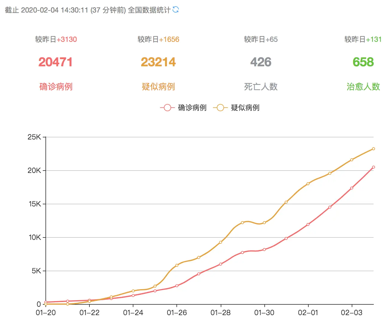 - 全国, 以及分省份/城市的确诊病例/疑似病例/死亡人数/治愈人数