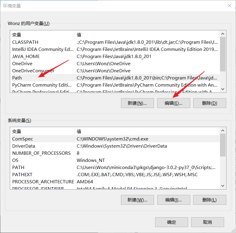 点击确认之后,再进入 系统变量 ,找到 PATH ,点击编辑: