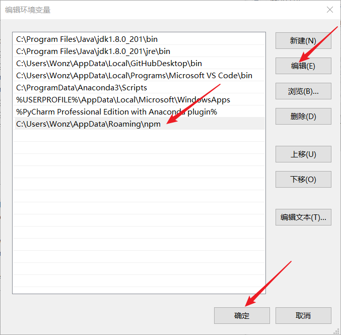 找到 用户变量 中的 Path :