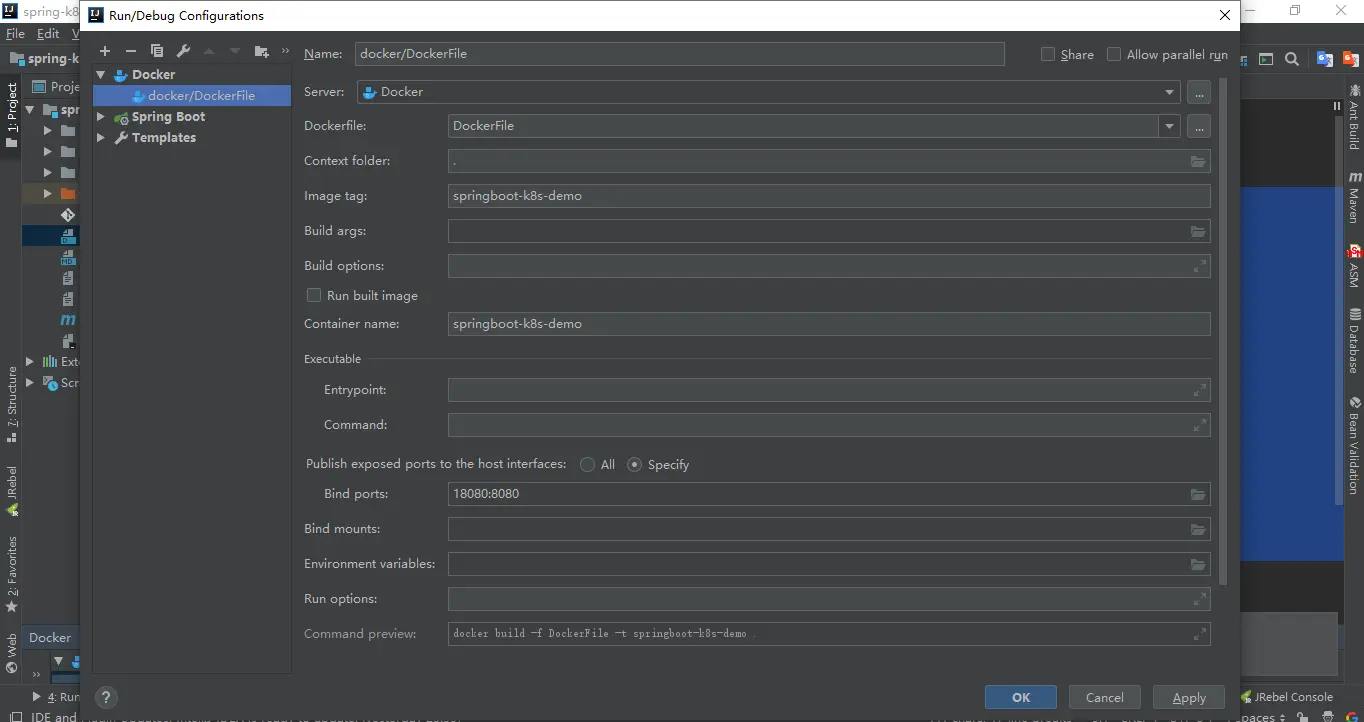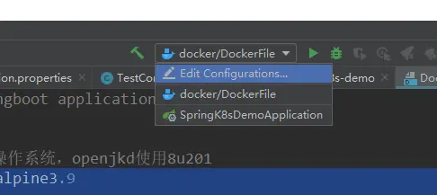 选择DockerFile,然后点击绿色箭头Run