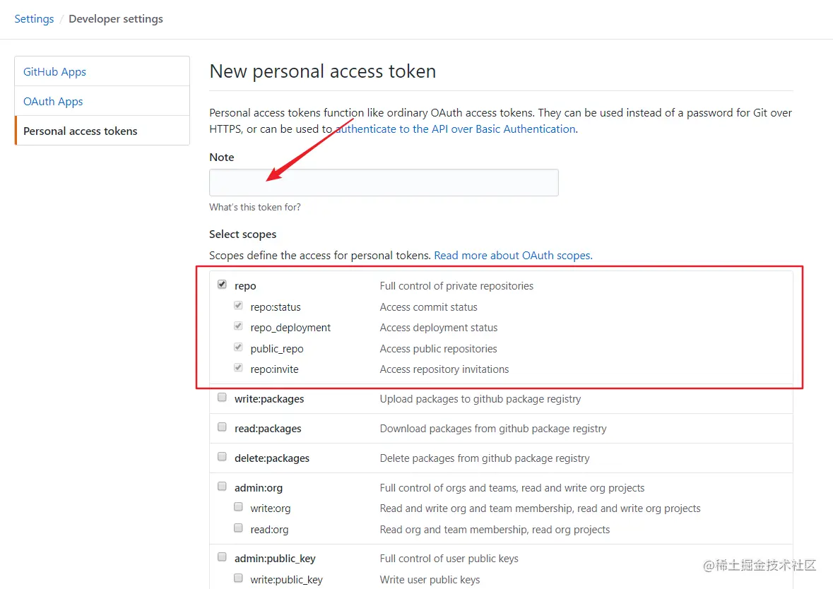 然后填写 Note,并把 repo 全勾上。