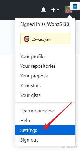 然后进入个人账号的 Settings :