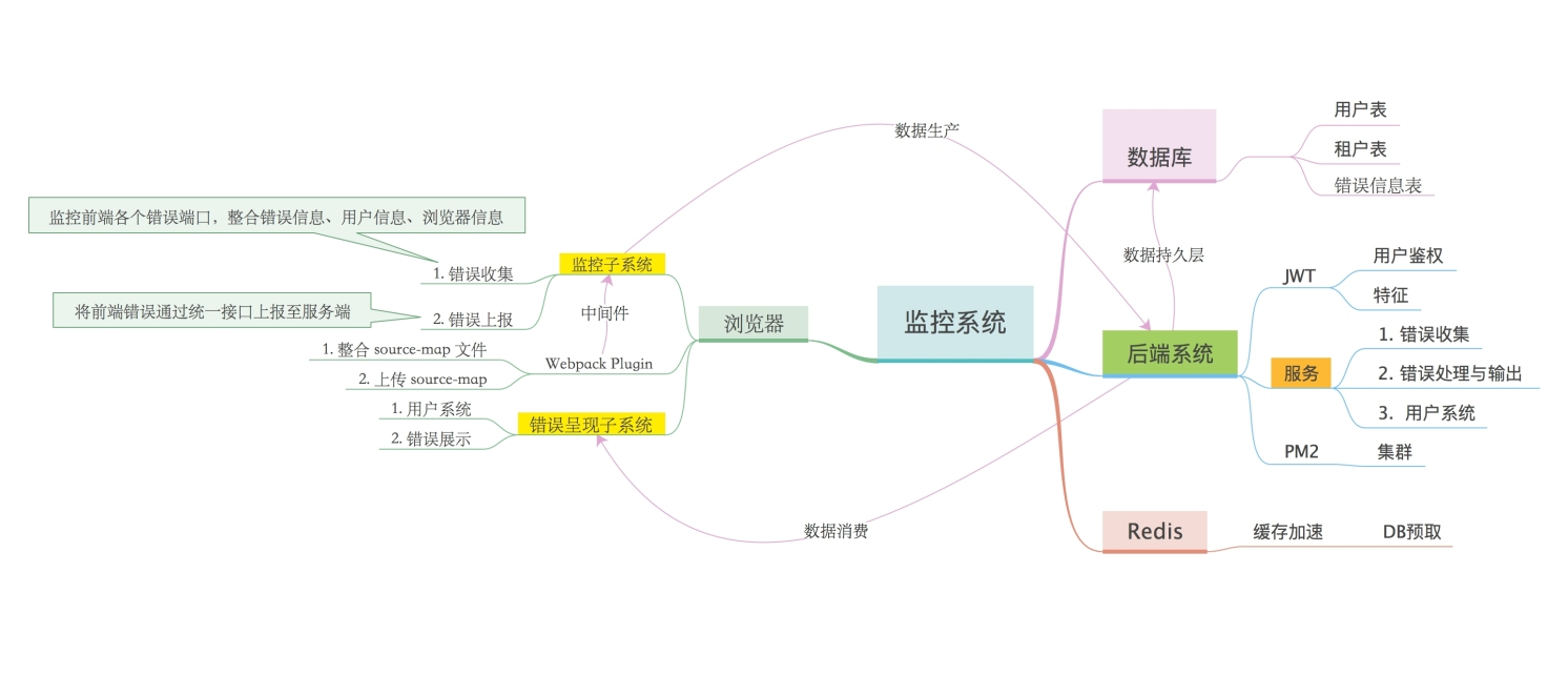 这个系统我们将从前端收集错误,上传至服务器,经由服务器解析存储并提供消费接口,并在一定程度上解析 source-map 来输出源码错误信息。