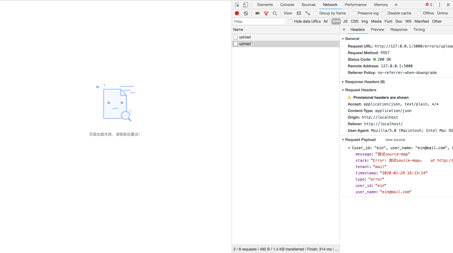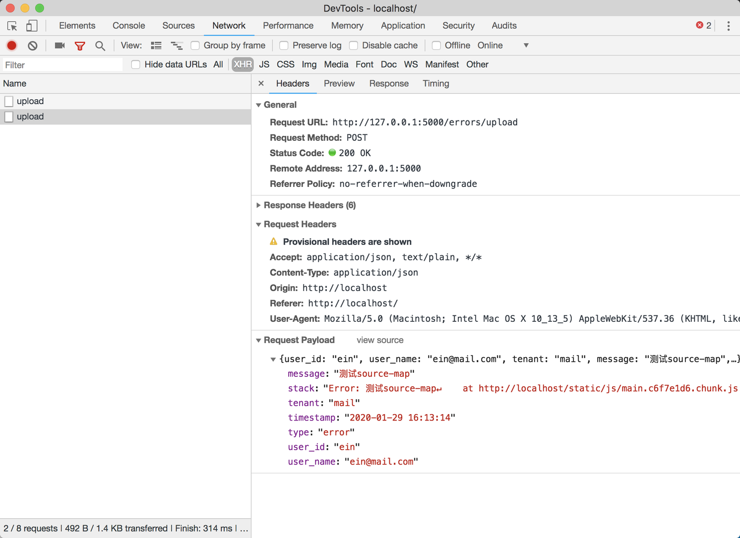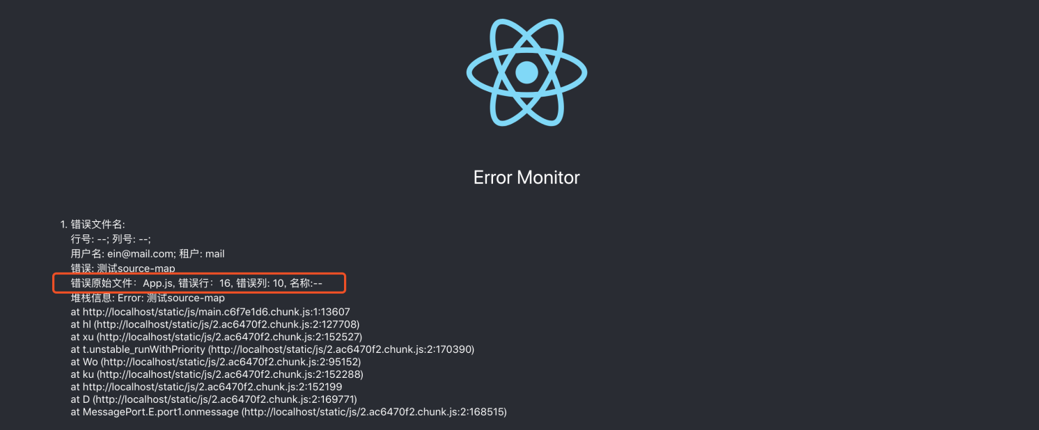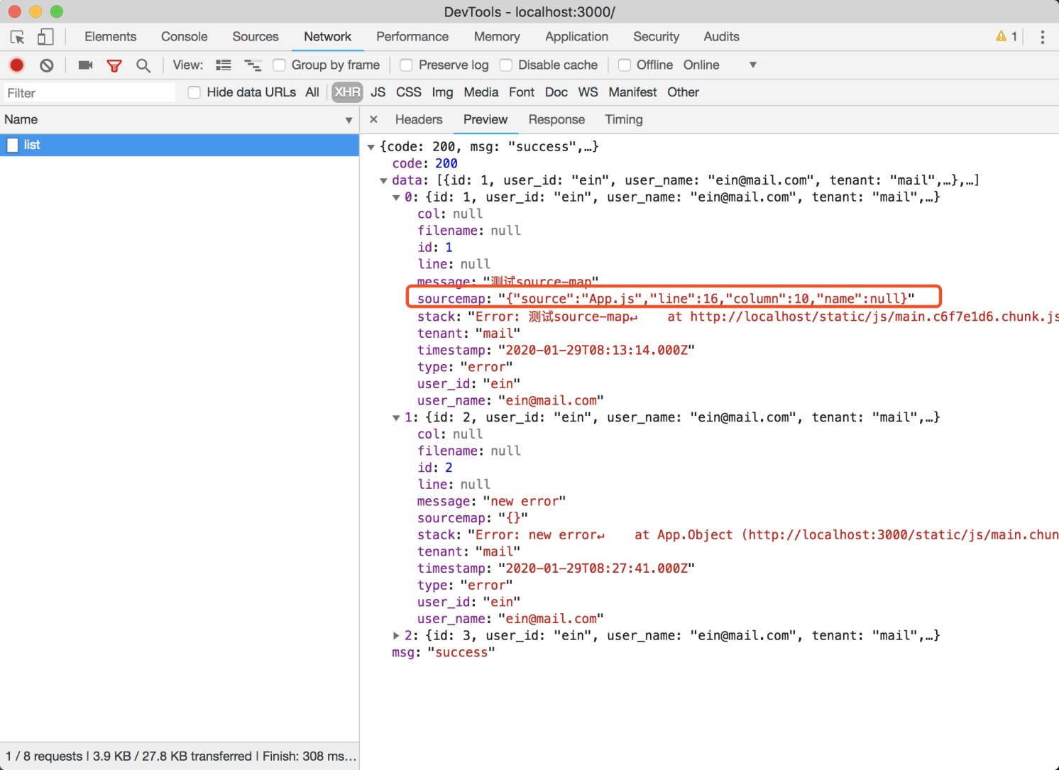 可以看到接口中的 sourcemap 字段就是我们最终解析到的错误源文件信息。