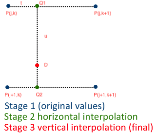 D = P(j,k)*(1-t)*(1-u) + P(j,k+1)*(t)*(1-u) + P(j+1,k)*(1-t)*(u) + p(j+1,k+1)*(t)*(u)