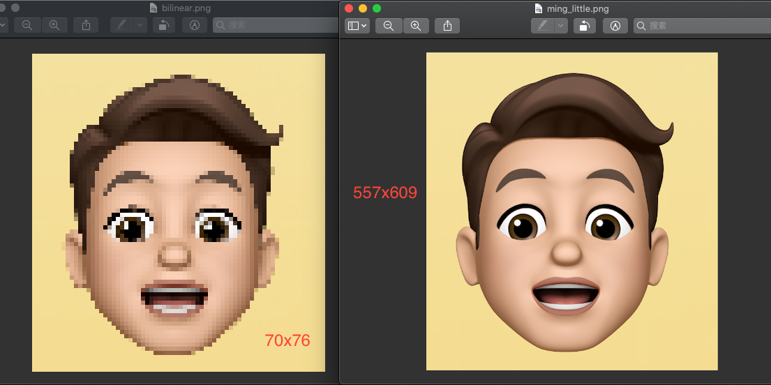 在双线性插值算法中,目标图像中新创造的像素值,是由源图像位置在它附近的2*2区域4个邻近像素的值通过加权平均计算得出的。双线性内插值算法放大后的图像质量较高,不会出现像素值不连续的情况。