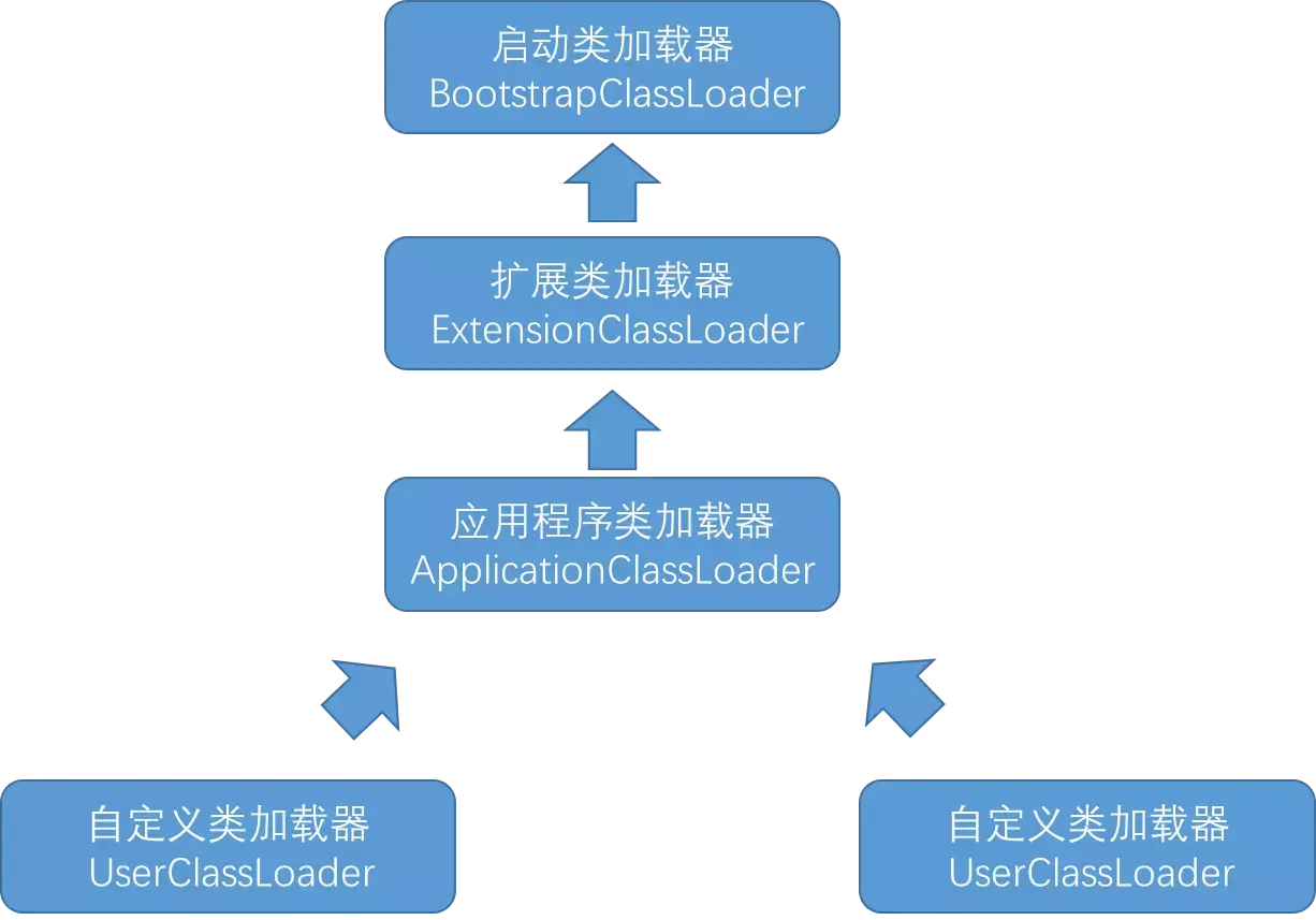 - 如果 BootStrapClassLoader加载失败(例如在 $JAVA_HOME/jre/lib里未查找到该class),会使用 ExtClassLoader来尝试加载