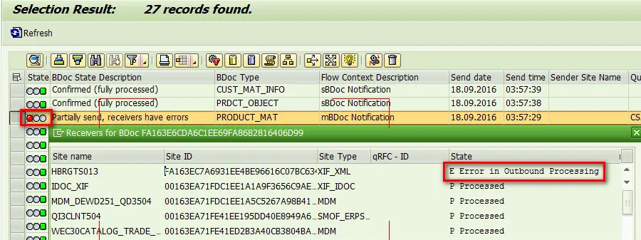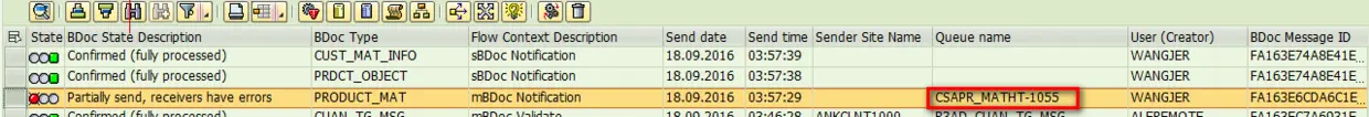 Why this BDOC has red light in tcode SMW01? It is becasue one of the receiver site, the XIF_XML, has some trouble when receiving this BDOC. However, since our main focus is to research the data exchange between ERP and CRM, we can just ignore this error.