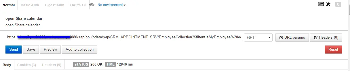 假设有一个SAP Fiori应用,点了某个按钮后,会触发一个OData服务调用,从ABAP Netweaver服务器上取数据。我已经在Chrome开发者工具里把这个OData服务的url抄了下来,维护在Postman里,随时可以重复调用。