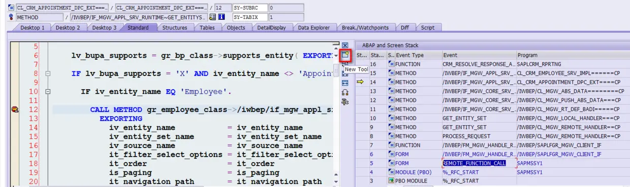 还是以上面的OData服务为例,因为抄下来的url片段包含了/sap/opu/odata/sap, 这起始已经告诉了我们在哪里设置断点。
