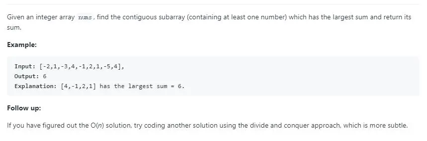给一个数组,找出一个连续的子数组,长度任意,和最大。