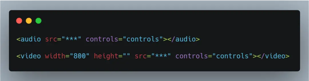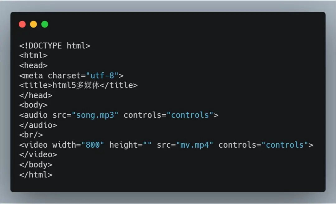 src为设置多媒体的文件路径,controls为设置是否使用播放控件。