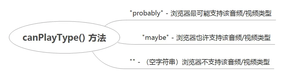 canPlayType() 方法浏览器是否能播放指定的音频/视频类型。