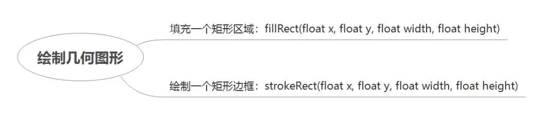 绘制几何图形的方法,填充fillRect(float x, float y, float width, float height),绘制strockeRect(float x, float y, float width, float height)。