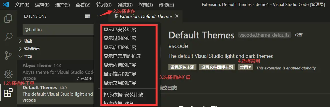 方案二:查看-》命令面板-》>theme