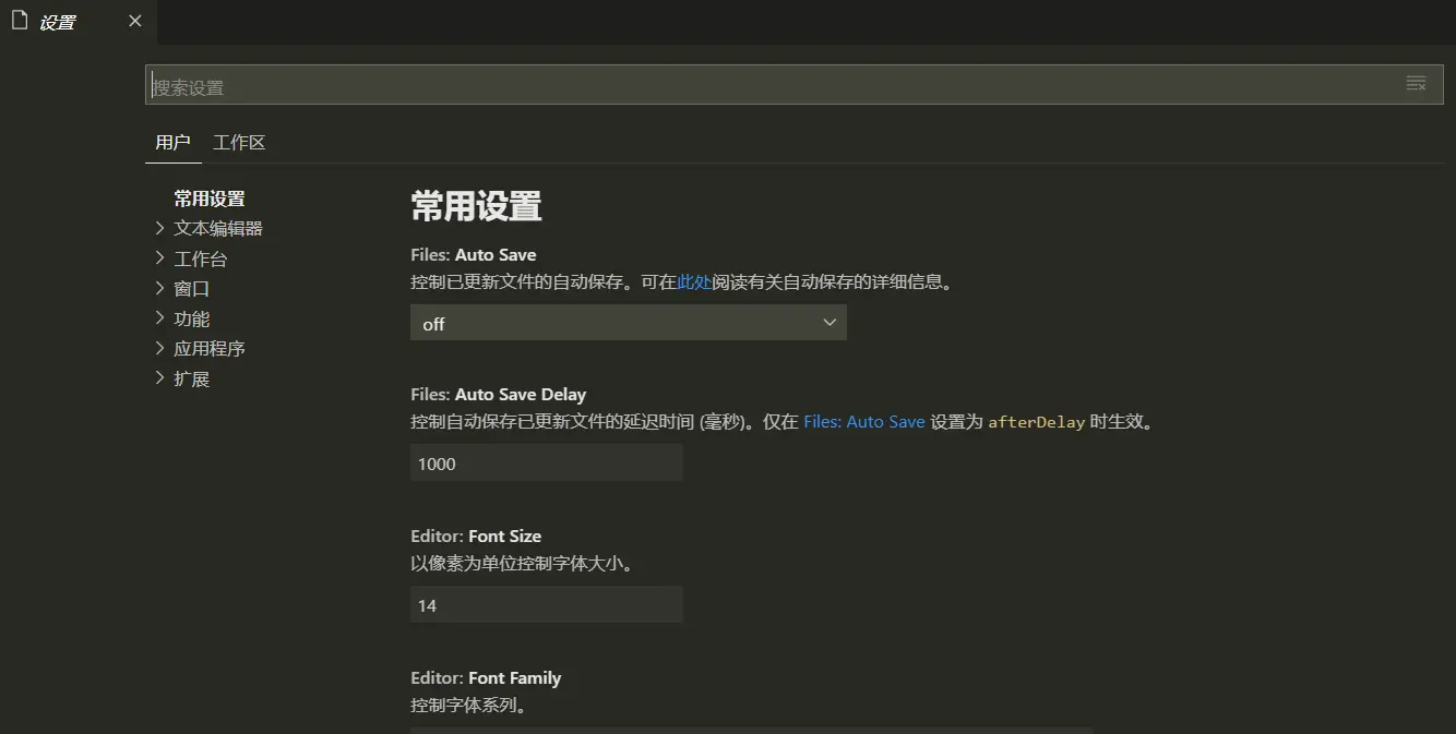 用户设置-全局应用于您打开的任何VS代码实例的设置