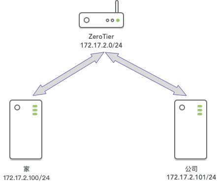 ZeroTier 配置一个虚拟网段172.17.2.0/24,在家中加入这个网络中,即可访问位于公司172.17.2.101