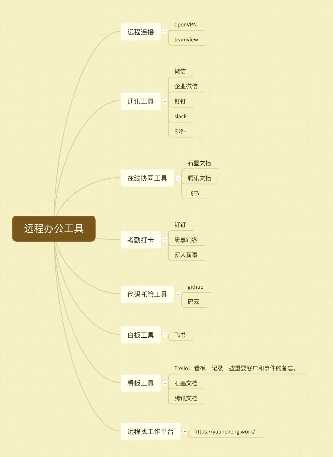 工欲善其事,必先利其器。这里总结了各项远程办公所需要的工具,主要包括远程连接,通讯工具,在线协同,考勤打卡等方面。